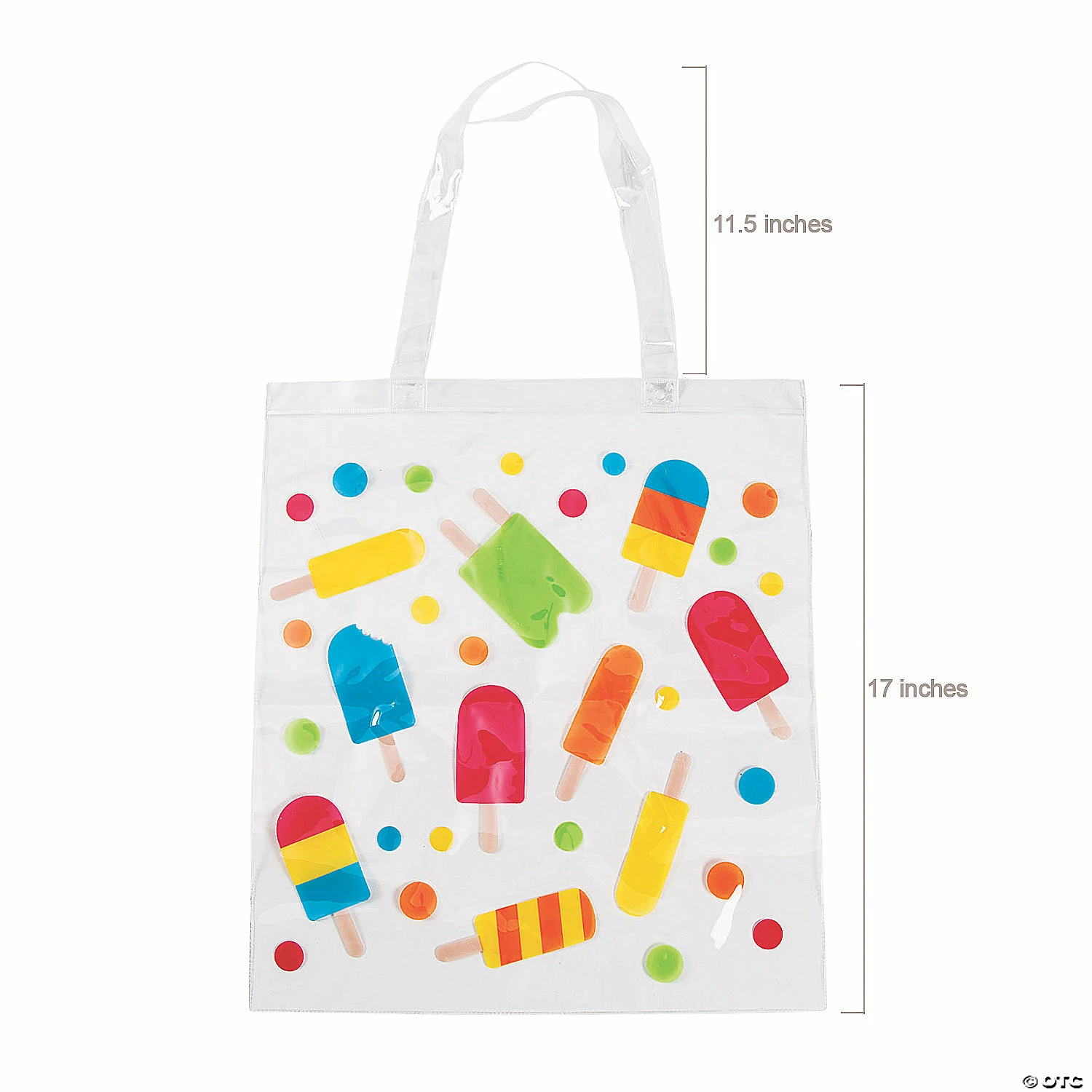 โข Durable Quality: Made of vinyl, these sturdy tote bags wonโt let you or your accessories down. Plus, you can conveniently store these reusable bags away until you need them again. โข Eco-Friendly: Ditch the plastic bags and go green with these eco-friendly tote bags! Mother Earth will appreciate the gesture, so gift these fun tote bags to your friends and family while youโre at it! โข Travel-Friendly: No matter where your day takes you, these tote bags are sure to be handy companions! Designed with easy-to-use straps and a spacious interior compartment, these tote bag are ready for every part of your on-the-go fun! Product Description:Perfectly made for the pool, beach or backyard picnics! A great addition to party favors and event giveaways, these large tote bags come with a sweet print of frozen treats. Even better, they are roomy enough to hold all sorts of summer essentials, from sunscreen to towels to toys. It’s all able to fit inside here! Size: 15″ x 17″ with 11 1/2″ handles.Quantity: 12Material: Vinyl.