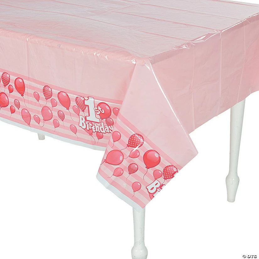 Cleanup will be a breeze with one of these bright tablecovers! Choose the color for your first birthday party theme and pile on the plates, cups, and other birthday party supplies without fear of spills or smudging up the party tables. Plastic. 54″ x 108″ Β© OTC
