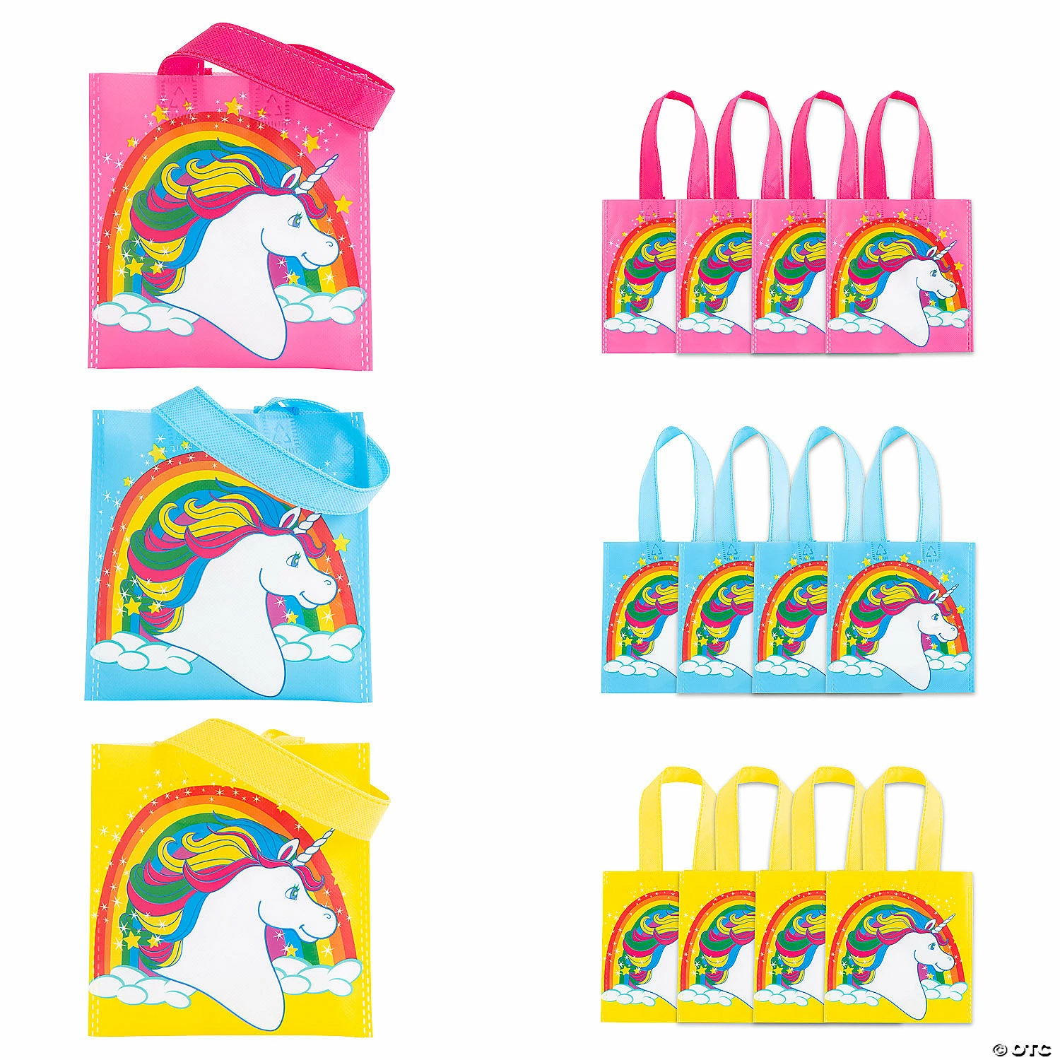 β’ Multi-purpose: This unique little tote can carry a wide range of everyday essentials, including board books, mini toys, snacks, crayons and more! Bring it along with you on special outings to the beach, the farmerβs market, or even the store. Youβll be glad you did! β’ Durable Quality: Made of nonwoven polypropylene, this sturdy tote bag wonβt let you or your accessories down. Plus, you can easily store the reusable bag away until you need it again. β’ Eco-friendly: You canβt myth when you go green with this eco-friendly tote bag! Mother Earth is sure to appreciate the gesture, so go ahead and gift this tote bag to your friends and family while youβre at it! Product Description:Fill your party with treats for all your guests! These brightly colored totes decorated with unicorns and rainbows are a fun, fantastic way to serve party favors, goodies and more. They’re also whimsical additions to your carnival supplies – pack them full of prizes for little winners. Know a little unicorn fan who’s expecting a birthday? Use one of these totes as a gift bag that will later be a magical handbag for all their treasures! Nonwoven polypropylene bags. 6″ x 6″ with 5″ handles. Β© OTCSize: 6β x 6βQuantity: 12Material: Nonwoven Polypropylene.