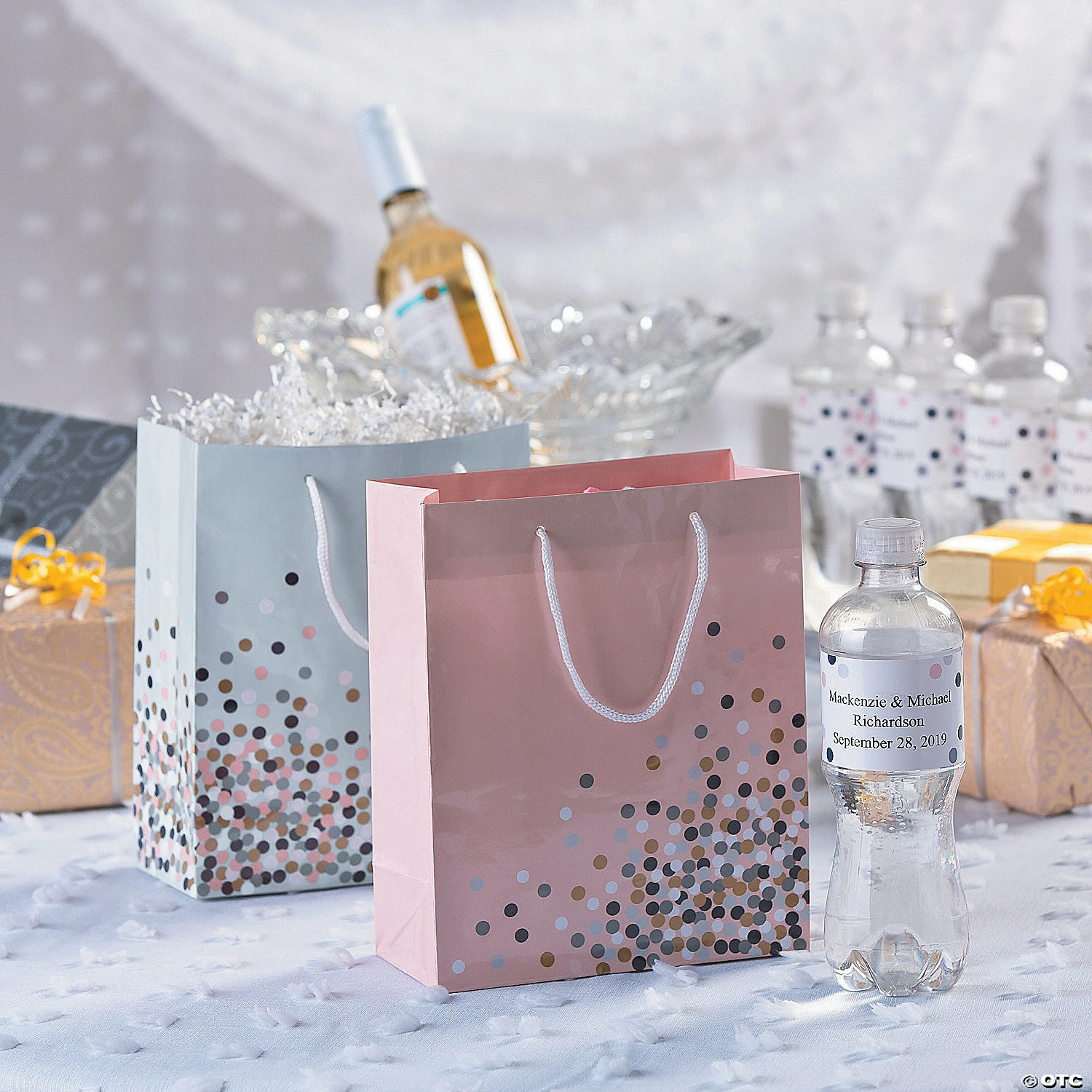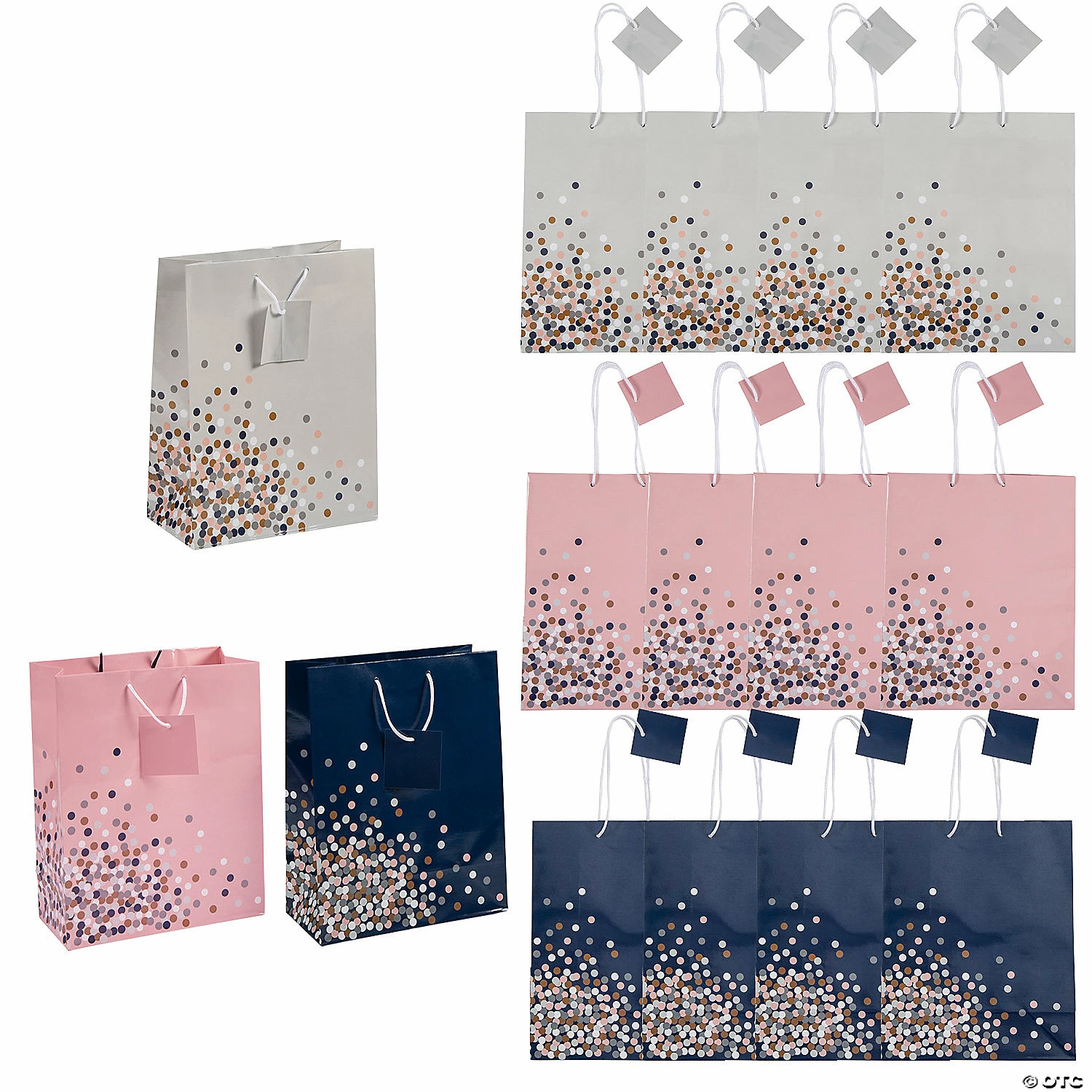 • Easy Gift Wrapping: These sturdy gift bags are suitable for holding a variety of presents and come with easy-to-carry handles. They make wrapping any gift easy breezy!• Quality: These stylish gift bags are sure to make your present stand out from the pack. Just add some tissue paper for a beautiful gift presentation!• Ready to Gift: With several gift bags on hand, you’ll never be caught unprepared when it’s time to wrap a gift again!Product Description:Featuring a cute confetti design, these gift bags are perfect for wedding favors for the bridal party! The casual and cheerful design also makes them great for birthday parties, baby showers, bridal showers and countless other celebrations. They’re strong, sturdy and great for re-use. © OTCSize: 8″ x 3 1/2″ x 9″ with 5″ nylon handles.Quantity: 12Material: Paper.