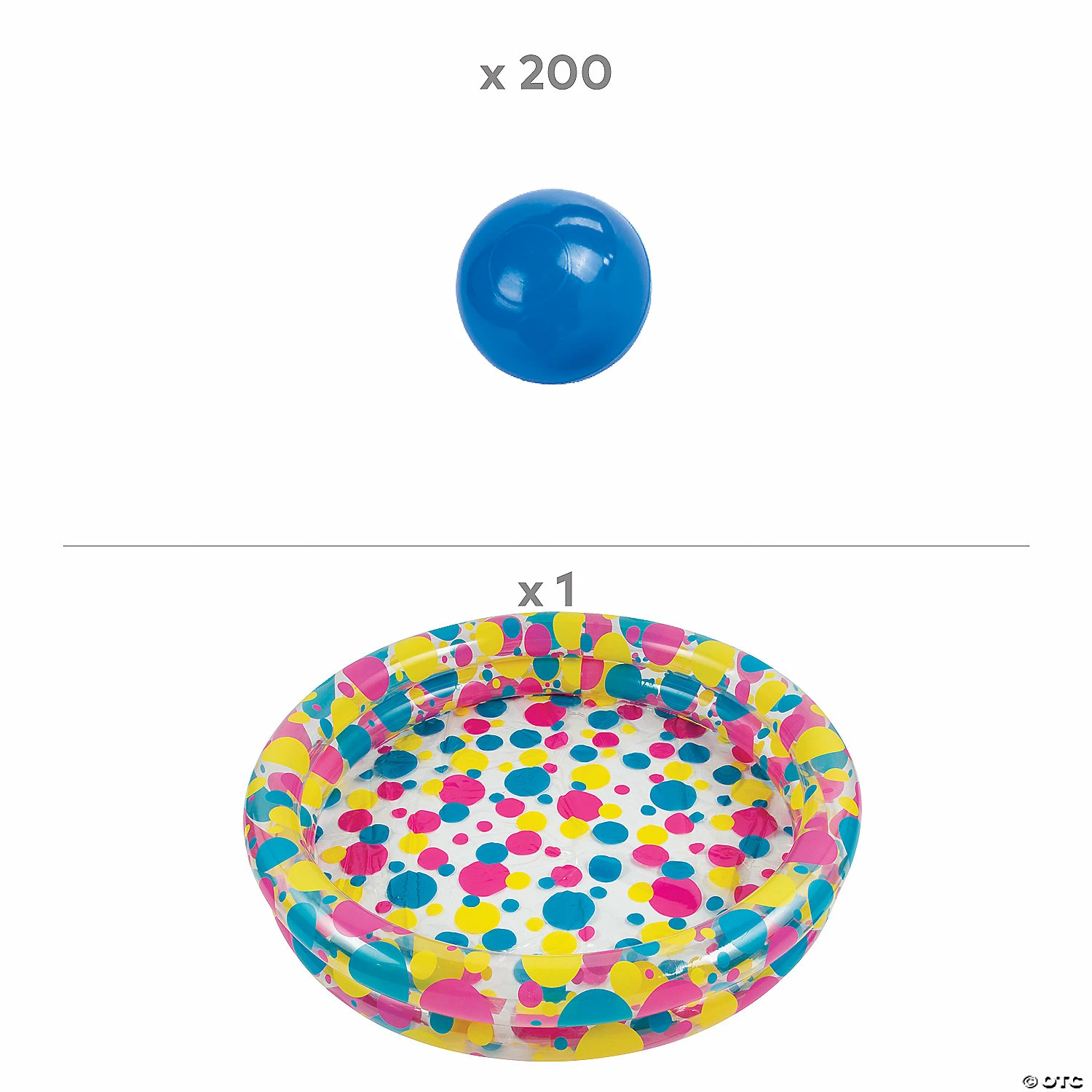 This all-in-one kit helps you create a fun ball pit for a birthday party, school carnival or jut everyday indoor fun! Just inflate the pool, toss in the balls and let the little ones dive in. Theyβre sure to have a ball with this easy activity! (201 pcs. per unit) Assortment may vary.Includes:β’ 200 Plastic Colorful Pit Balls (2 1/2″)β’ 1 Vinyl Inflatable Duck Pond Pool (Inflated, 3 ft. x 6″ Accessories not included.)