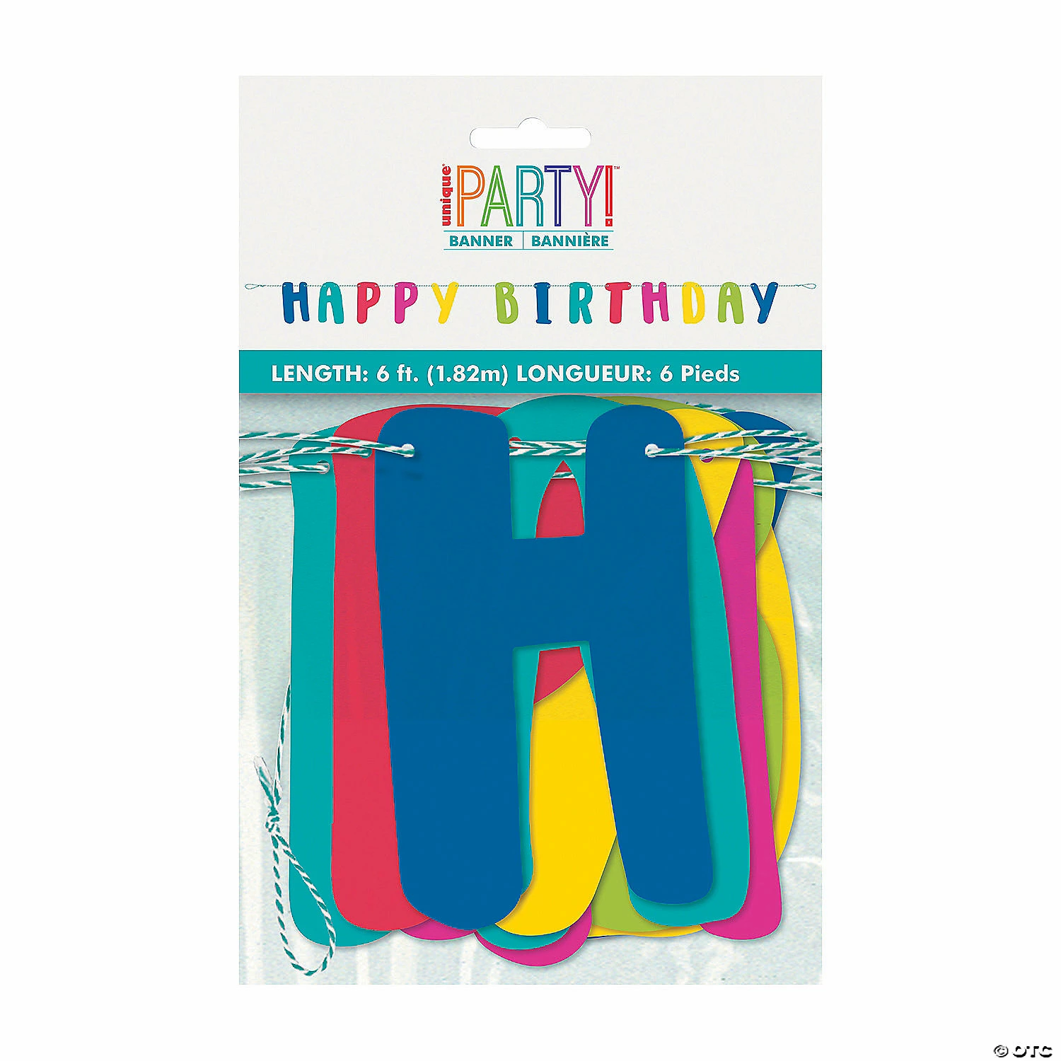 This βHappy Birthdayβ banner is the cherry on top of your llama-themed birthday party supplies! Hang up the vibrant party decoration to highlight your cake table or DIY photo booth area. Featuring a rainbow of letters, this colorful banner looks great strung up at birthday parties for kids of all ages! Paper. 6 ft.
