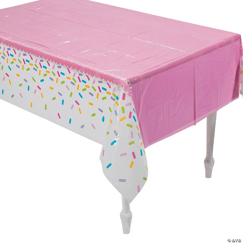 Everything’s better with sprinkles – including donuts! Use this Cupcake Party Tablecloth on your donut bar at your birthday party, wedding reception or other special event. It’s pink and pretty, and it’s super easy to swipe up any sprinkles or crumbs that you or your guests drop. © OTCβ’Β Material: Plastic.β’Β Disposable.β’Β Thin, slightly transparent.β’Β 54″ x 108″