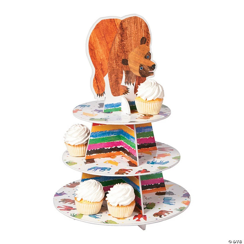Display your sweet treats with a little help from Eric Carle! This Brown Bear, Brown Bear, What Do You See? Cupcake Holder will store your sweets in style. Featuring Eric Carle’s beloved Brown Bear, Brown Bear character, this sturdy cupcake holder will make your treats table shine. Explore even more supplies from The World of Eric Carleβ’ on our site! Holds approx. 24 standard-size cupcakes. White foam board covered in laminated paper. 18 1/2″ x 13″ diam. Β© OTC