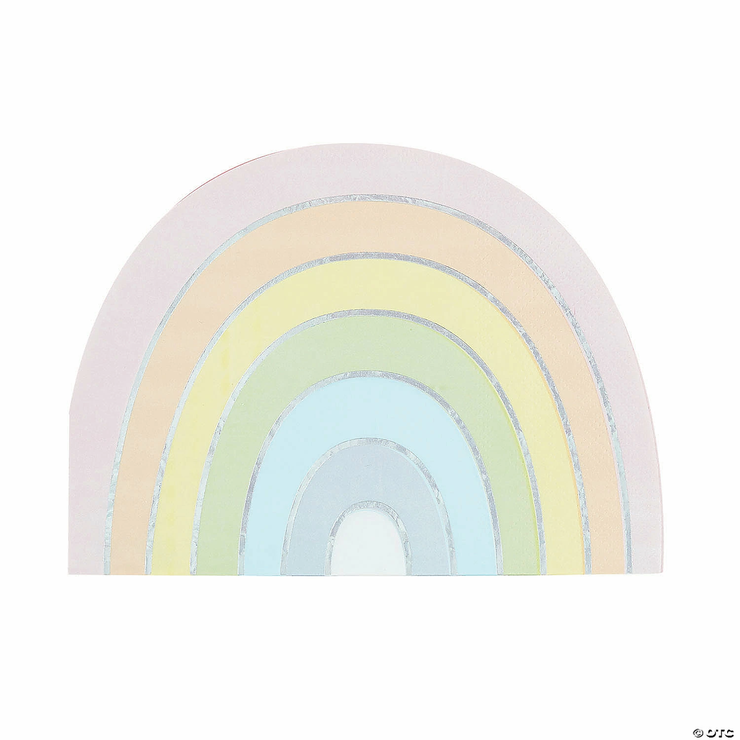 Add some pastel pep to your party! Coming made to look like itty-bitty, oh-so-cute rainbows, these napkins are a simply adorable addition to birthday party supplies. Shimmering and shining with iridescent foil, these truly are a bright spot on your buffet. With these, your celebration wonβt become clouded with messes and spills. Rainbows to the rescue! Paper. (16 pcs. per unit) 4 1/2″ x 6 1/2″ Not microwave safe. Β© Ginger Ray Ltd.