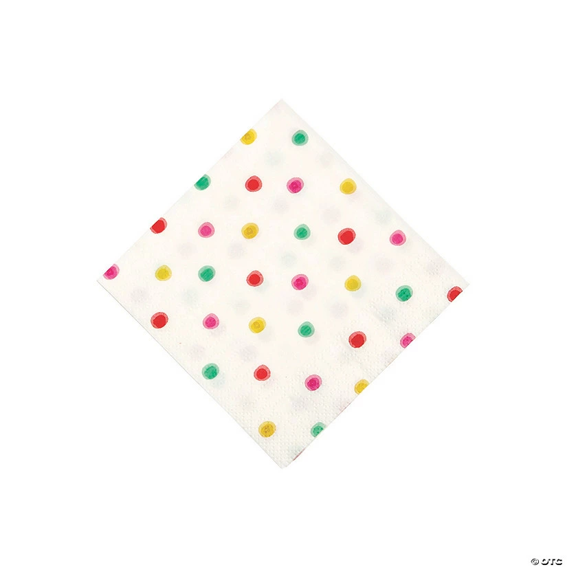 These pretty napkins are perfect for soaking up spills at your birthday party! Featuring colorful polka dots on a white background, this essential party supply is sure to make your bash pop. Place stacks around the venue for small spills and quick cleanups throughout the celebration! Paper. (16 pcs. per unit) 5″ © OTC