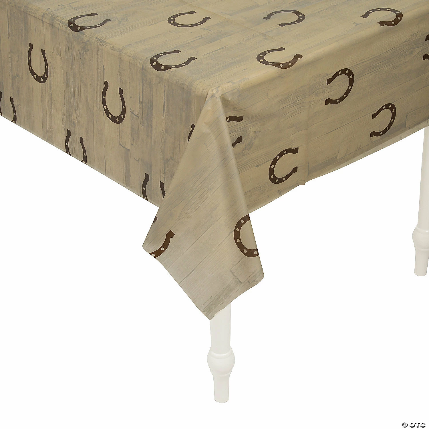 Dress up your country western birthday party, school dance or other shindig with these horseshoe tablecloths! This rustic table dΓ©cor is sure to a be a shoo-in for favorite cowboy party decorations. Gallop around this site for more western party favors, decorations, costumes and more! Β© OTCβ’ Disposable.β’ Arrives folded in half on a 20β roll.β’ 40″ x 100 ft.