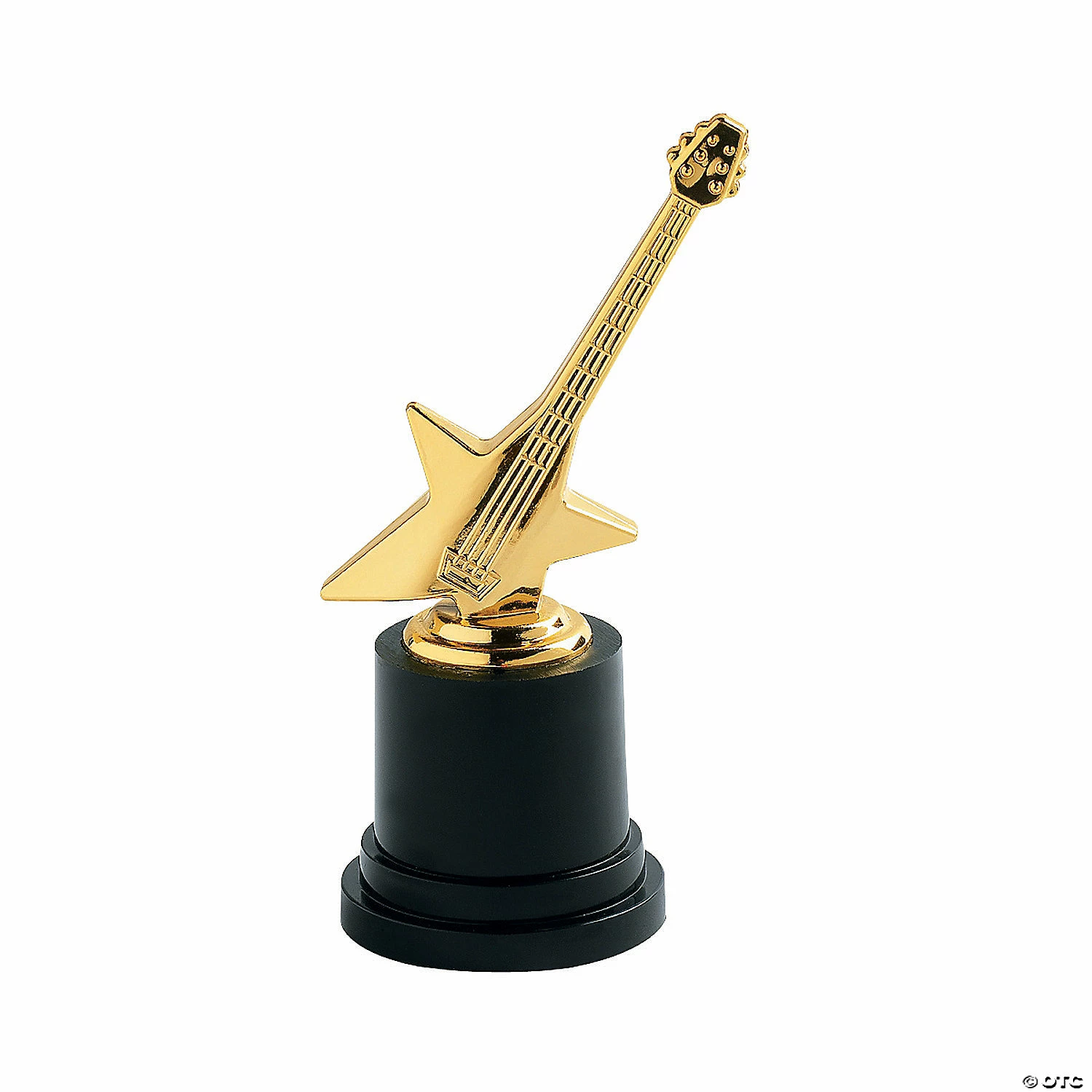Hand out these Rock Star Trophies to the top rockers in your classroom, office, youth group and more. These fun trophies can be used in any setting where you are recognizing the hard work of your rock star students, employees or musical geniuses. Topped with a goldtone guitar, these awards are also a great favor for a karaoke party. Plastic. 5″ ยฉ OTC