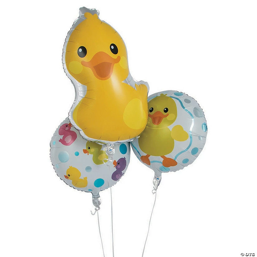 Inflate to make your shindig quack-tacular! Perfect for party dΓ©cor, this adorable set of mylar balloons features a colorful flock of rubber duckies. Like bubbles in a bath, blow these up and little ones of all ages will be grinning from ear-to-ear, chasing ’em about the celebration space. Whether you’re hosting a birthday bash or baby shower, these balloon ducks are ready to waddle in and wow! (3 pcs. per set) 17 1/4″ – 18″ x 18″ – 25 1/4″ © OTC