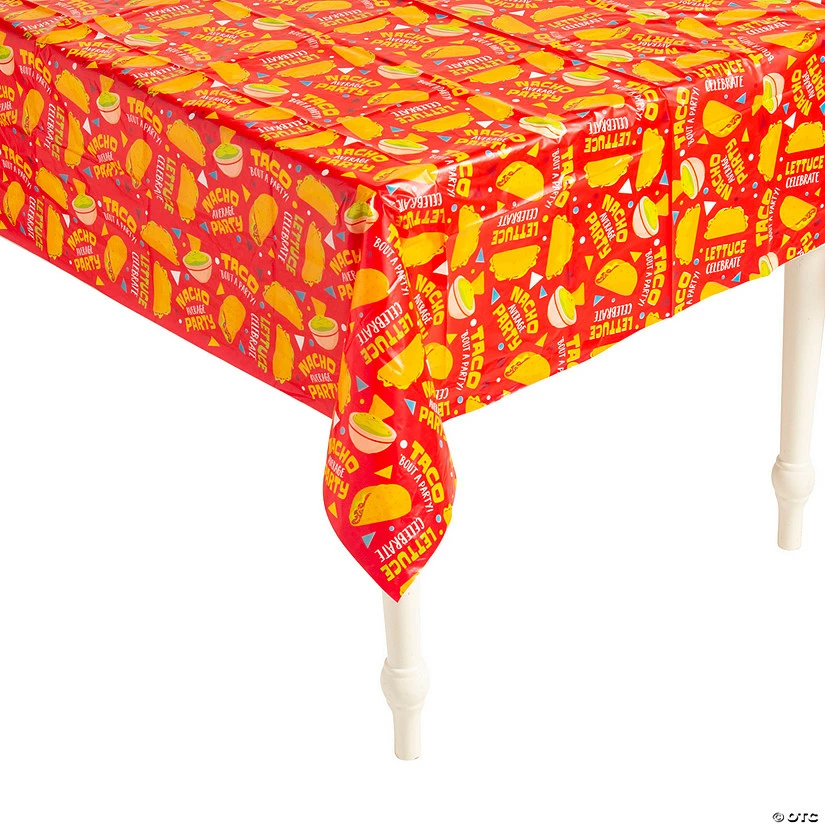 As much as youβd probably love to cover your table in actual tacos, itβs a situation that would require a great deal of cleanup after your fiesta. Cover your table with this taco tablecloth instead! Taco βbout a great fiesta tablecloth! Perfect for taco night or any party with a taco buffet, this disposable tablecloth will help make cleanup a breeze! Plastic. 54″ x 108″ Disposable. Β© OTC