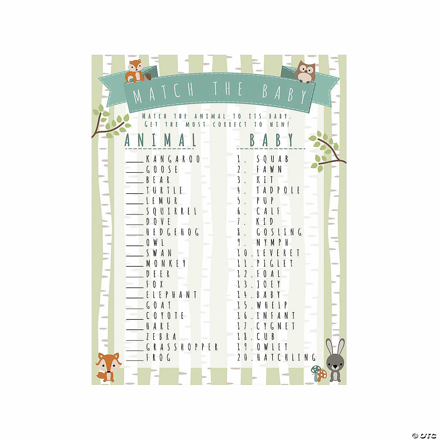 In the animal kingdom, babies have so many different names β fawn, pup, calf, joey, cub and many more. In this fun party game, guests match the animal to its baby and see who can get the most matches. Perfect for baby showers, this party activity will really test your baby knowledge! Paper. (25 pcs. per unit) 8 1/2″ x 11″ © OTC