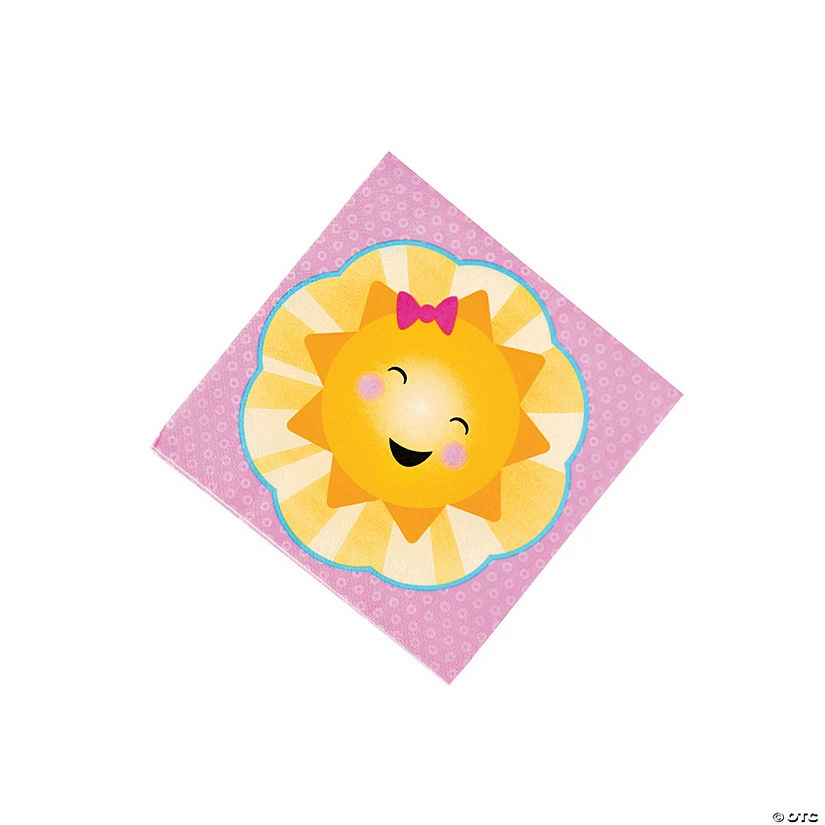 Celebrate sunny days with party supplies that make you smile. These You Are My Sunshine Lunch Napkins show a beaming sun sporting a bright ribbon against a vibrant pink and blue background. If a birthday or summertime celebration begins to become clouded with messes, these napkins clear things right up. Shop more You Are My Sunshine Party supplies online! Paper. (16 pcs. per unit) 6 1/2″ © OTC