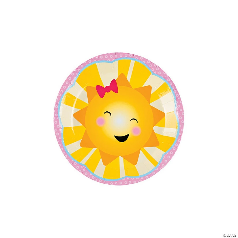 Dessert has never been hotter with these fun birthday party plates. Featuring a smiling sun against a bright pastel background, these plates are waiting to be piled high with cake and ice cream at a first birthday bash or summertime celebration. Include these plates with the rest of your sunny partyware to wrap up your party planning! Find the rest of our You Are My Sunshine party decoration on our website. Paper. (8 pcs. per unit) 7″ © OTC