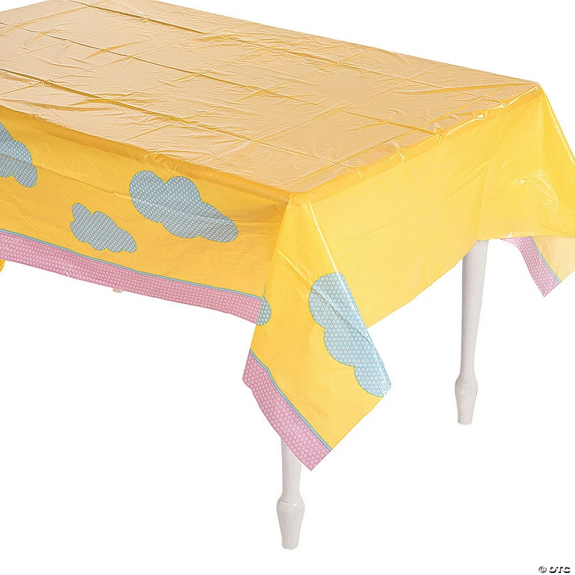 Add a pop of yellow to your special celebration with this You Are My Sunshine Tablecloth. A bright addition to your party supplies, use this plastic tablecloth to protect your event table from spills, greasy fingers and party fouls. Β© OTCβ’ Plastic.β’Β Disposable.β’Β 54″ x 108″